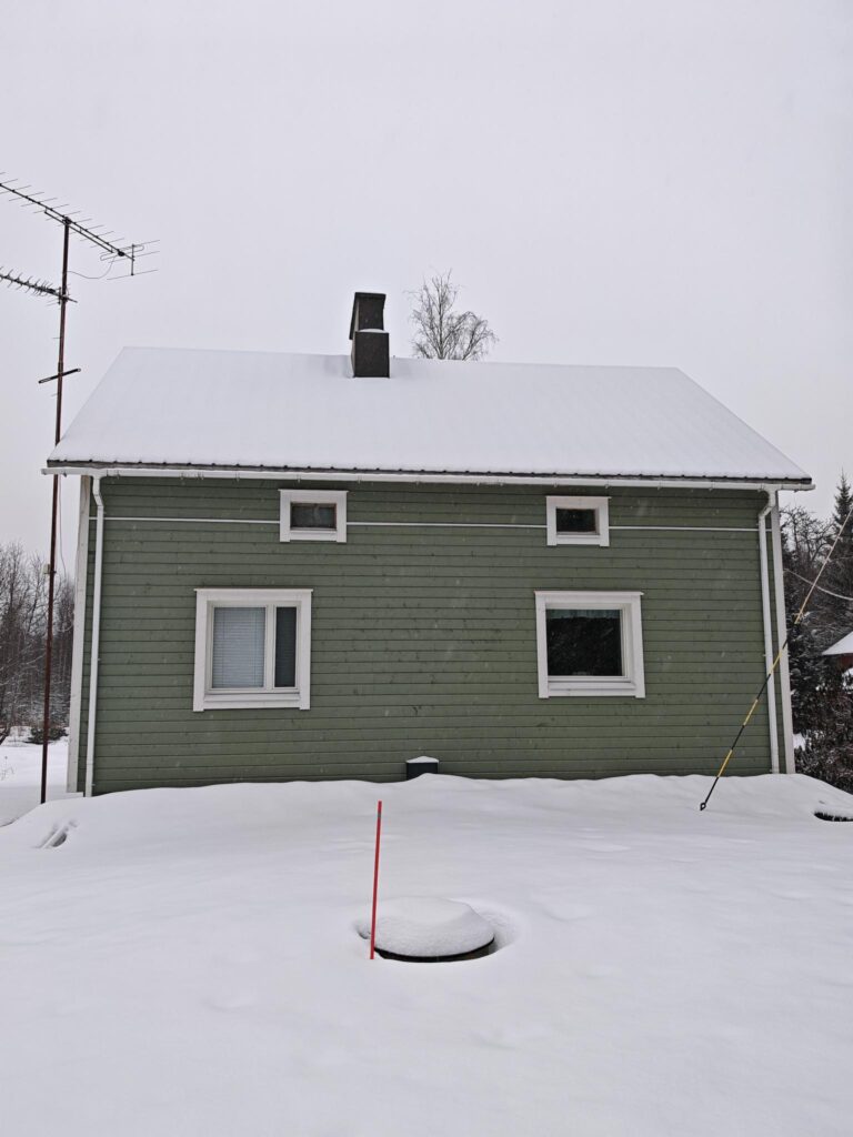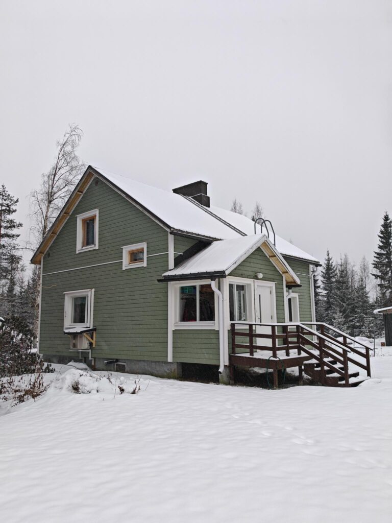 – Vaihdetun ulkolaudoituksen myötä taloni näyttää aivan kuin uudelta. Remontin yhteydessä ulkoseiniin asennettiin värimaalattu laudoitus. Tulevana keväänä taloni julkisivu saa vielä toisen kerroksen maalia. Kaunis vihreä ulkoverhous sointuu aivan upeasti ympäröivään luontoon ja viereiseen metsään, Seija iloitsee.